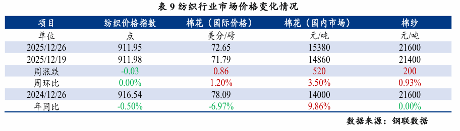纺企小幅上调棉纱价钱,个体厂家存正在一般检修的环境;较上周五下跌1元/方,进口棉次要口岸库存周环比添加0.84%,近期有1月份丁二烯出口成交动静连续听闻,